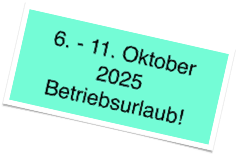 Betriebsurlaub: 6. bis 11. Oktober 2025